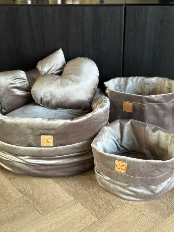 Maak je hondenmand of ligkussen compleet met een bijpassende speelgoedmand in de kleur taupe. Verkrijgbaar in dezelfde kleur als je hondenmand, of ga voor een mooie contrasterende kleur. De speelgoedmanden zijn wasbaar op 30 graden en trekken geen haren aan.
